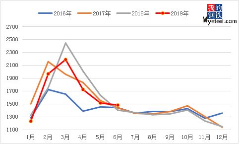 對比庫存和周消費(fèi)量來看,整體處于微妙平衡的狀態(tài),6-7月的市場整體還是處于略有支撐狀態(tài)。而且隨著進(jìn)入下半年的沖刺階段,整體鋼材需求有可能高于上半年。所以整體的庫存可能在近期回升之后再度下降至年底。