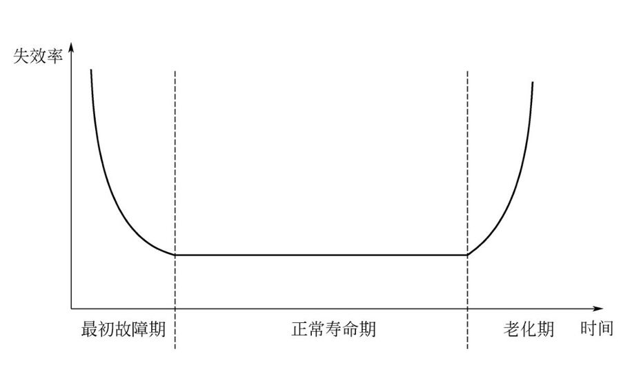 (1)早期失效設(shè)備在最初故障期發(fā)生的失效為早期失效,失效率由大減小。這是因?yàn)樯a(chǎn)出的設(shè)備中有一些存在生產(chǎn)缺陷,隨著它們不斷的暴露出來,失效率就逐漸下降。